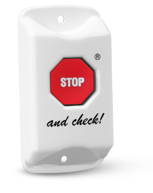Because Child Check-Mate has become an industry standard, many people call any reminder system a 'Child Check-Mate'. We're flattered, but this can be misleading. If the system does not come with a 'stop sign' button (image below), it is not a genuine Child Check-Mate system.